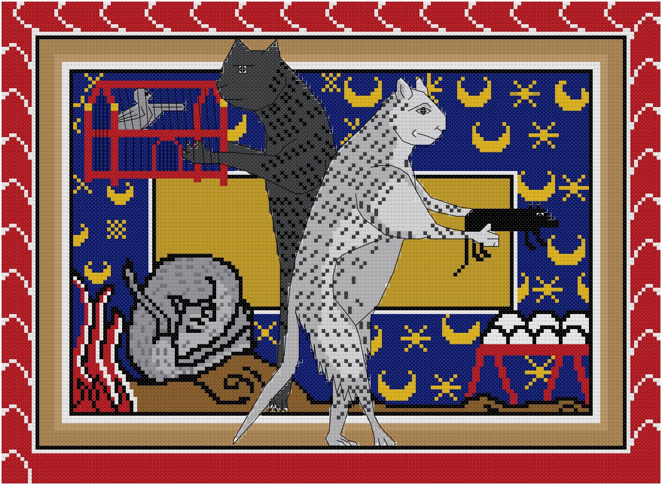 Medieval Cats 13th Century Illumination Cross Stitch Etsy Canada